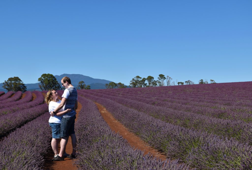 Vandaag zijn we om 08.00 uur vertrokken richting de Lavendeltuin (Bridestowe Lavender Estate). We willen daar zijn zodra het opengaat, aangezien we niet tussen al die toeristen willen staan. We waren dus vroeg uit de veren. Onderweg zagen we weer enorm veel dode dieren liggen op de weg. Als je hier in Tasmanië rijdt, rij je eigenlijk over een kerkhof van overleden dieren. Echt te zielig (en af en toe smerig) om te zien. Hoe moeilijk is het om iets minder hard te rijden?! Vooral bij zonsopkomst en zonsondergang. Als je gewoon normaal rijdt, zie je ze al zitten en weet je dat ze voor je auto willen gaan. Het is echt sneu en veel erger dan op het vaste land van Australië. Maar dat kan er ook mee te maken hebben dat ze daar opgeruimd worden en dat ze hier er geen zin in hebben. Tasmanië ziet er nou eenmaal armer uit dan het vaste land.