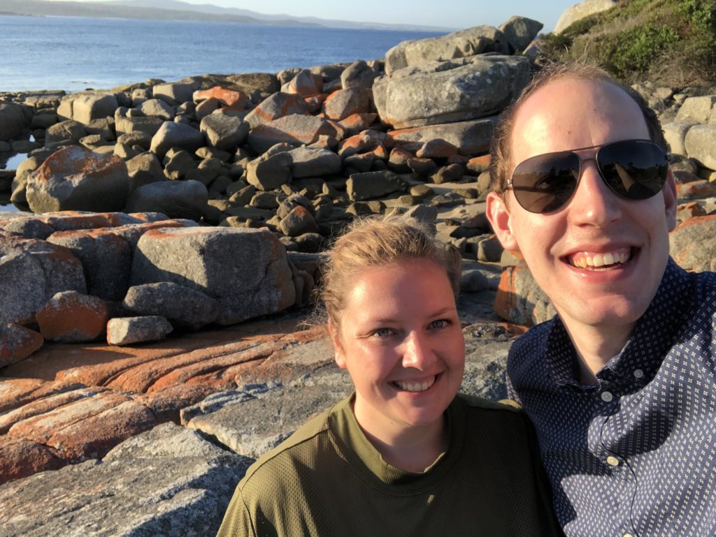 Bij de vuur rode/oranje stenen kwamen we de ‘dorpsgek’ tegen. Hij vertelde dat we op het mooiste plekje van de Bay of Fires stonden. Het plekje had ik dus maar mooi gevonden. De man vertelde een grappig verhaal wat Steven in het filmpje hierboven droog zal navertellen. We hebben nog even genoten van het uitzicht en de zonsondergang. Morgen vliegen we terug naar Melbourne om onze reis te vervolgen naar de Great Ocean Road.