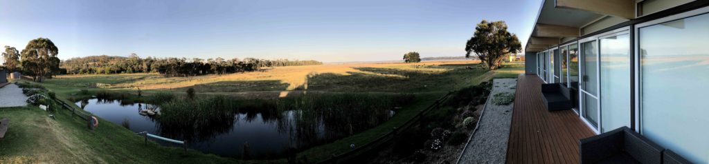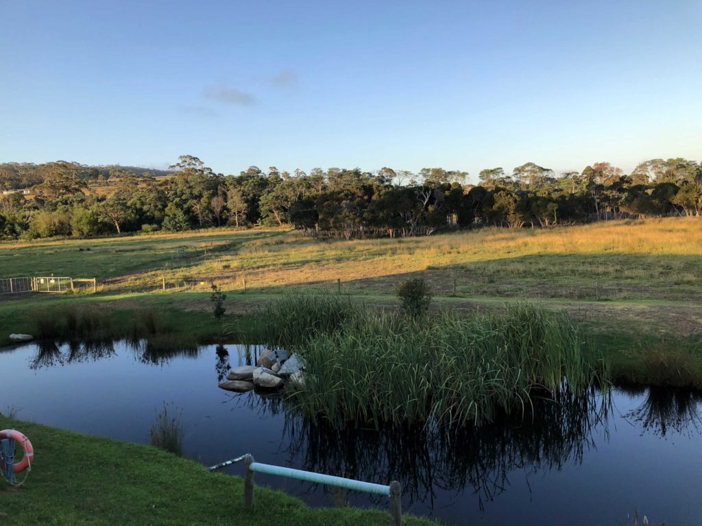 We hebben de rest van de dag niet heel veel meer gedaan. Ik heb kipspiezen (skewers) gemaakt. Dat gaat slecht met slechts 1 pan. Ik heb nog wat paprika’s bereid in een steelpan. Het is behelpen maar het was wel lekker. Op het nieuws hoorden we dat St. Helens vandaag het heetste plekje was van Tasmanië met 35 graden. We zijn uiteindelijk maar weer vroeg naar bed gegaan om deze dag te vergeten. Hieronder nog wat foto’s van het uitzicht bij de ‘villa’.