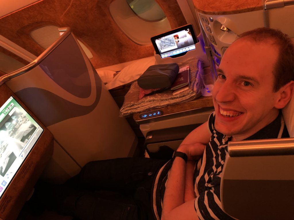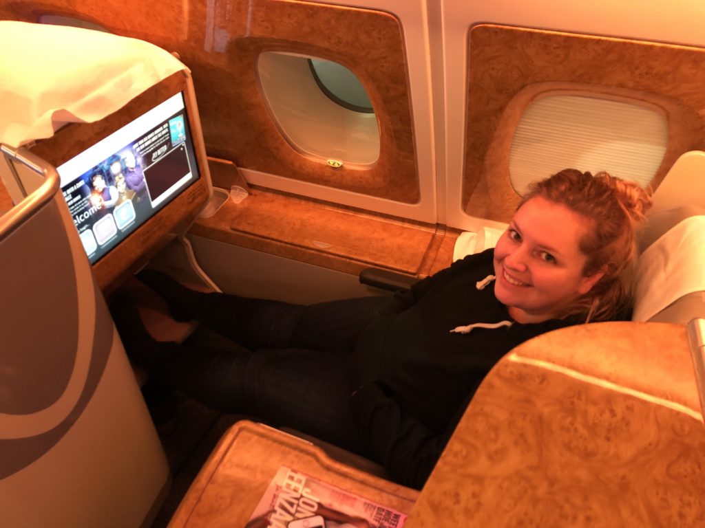 De verzorging in het begin was echt heel goed. Je krijgt een matras op je stoel en ze vragen de hele tijd of je wat wil drinken. Je mag alles vragen. Een heel verschil met een verdieping beneden. Maar omdat onze passagiers vooraf werden ingedeeld viel de service een tijdje later een beetje tegen. Ik denk persoonlijk omdat dat kwam omdat de stewardess die wij eigenlijk hoorde te hebben ons gewoon vergeten was en de andere waren bezig met “hun” passagiers. Ik heb een paar uur lekker liggen rusten. Op de reis naar Dubai hadden we maar 20MB internet of 2 uur, welke eerst komt. Maar hier hebben we gewoon de hele tijd internet. Wat wel opvalt is dat dingen als live TV en dergelijke ontbreekt. Dat vind ik wel jammer. Ik had graag even het vuurwerk gezien in Sydney en de rest van wereld. Voor de rest was dit echt een top ervaring. Geweldig om een keer zo te vliegen.