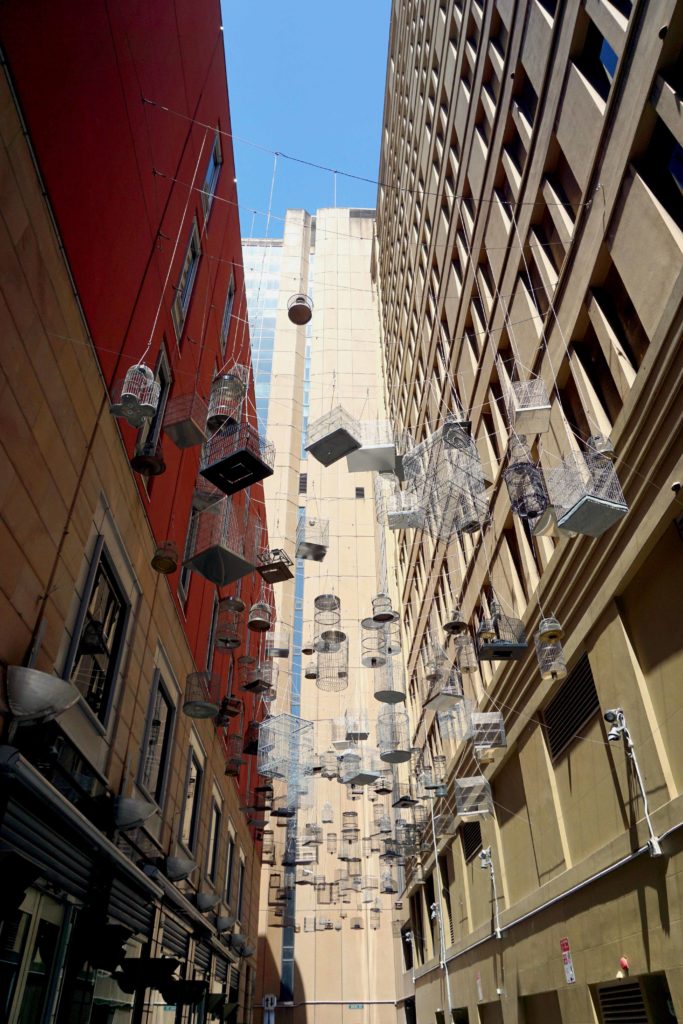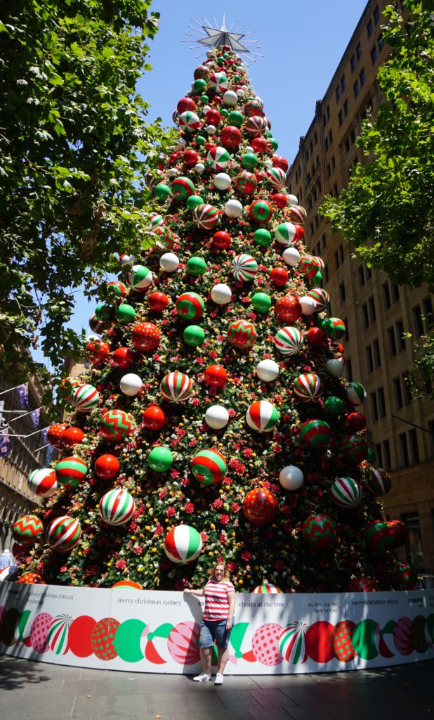 Rian wilde graag naar het Queen Victoria Building. Dus we liepen die kant uit. We liepen al snel tegen een gigantische kerstboom aan die gevuld was met kerst(strand)ballen en bloemen. Toch apart om zo’n kerstboom in de zomer tegen te komen. Onderweg kwamen we in Hyde park en troffen daar een prachtige fontein en een kerk aan. Ook waren mensen aan het schaken op een groot schaakbord. Er gebeurde heel veel. We keken vanuit het park uit op een grote uitkijktoren. Toen we in NYC waren hadden we alles gepland wat we wilden zien. Maar hier liepen we gewoon tegen van alles aan. Heel leuk. Er zijn echt veel winkelcentra en het is, wellicht door de vakantie, heel druk op straat. Wat ook opvalt is dat het overal zo groen is. Overal staan bomen of zijn (kleine) parken. We zijn in de Sydney Tower Eye gegaan. Dit gebouw is 305m hoog en biedt uitzicht over de hele stad. Het is het hoogste gebouw van Sydney. Bij binnenkomst werd een 4D film getoond. Het was wel grappig dat ik dit kon zien. Eenmaal boven in de toren was het een beetje jammer dat je alleen achter de ruiten naar buiten kon kijken en er geen observatiedek is. We hebben daar nog een pet voor mij en een souvenirtje gekocht.