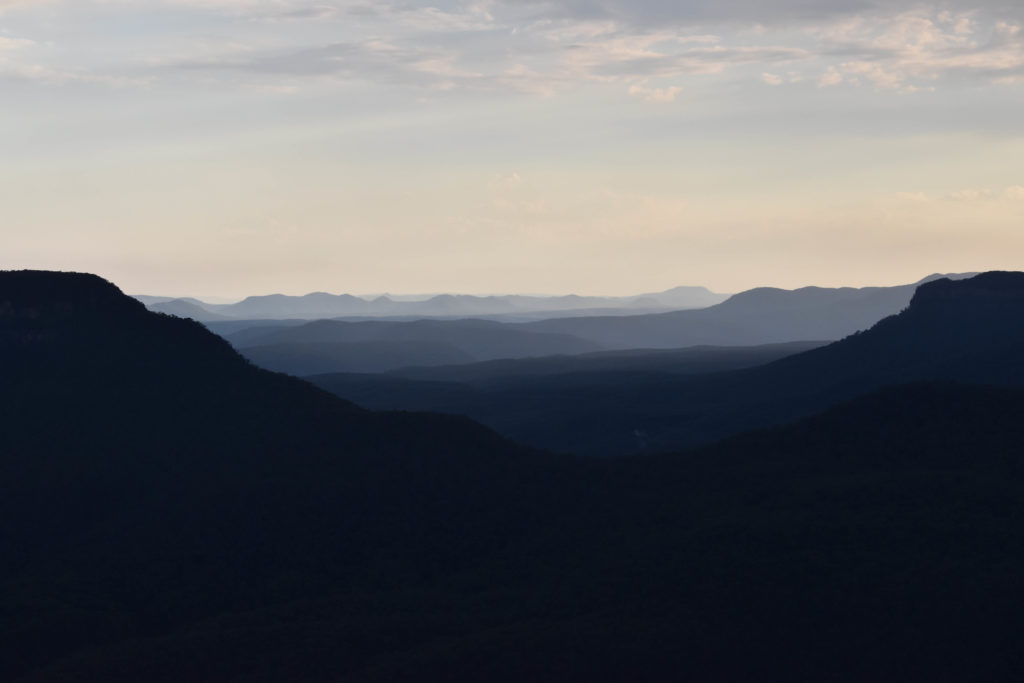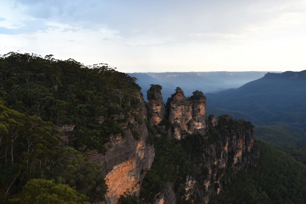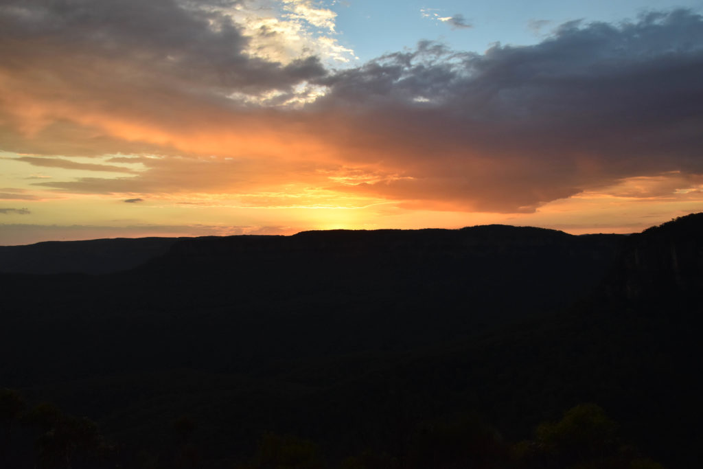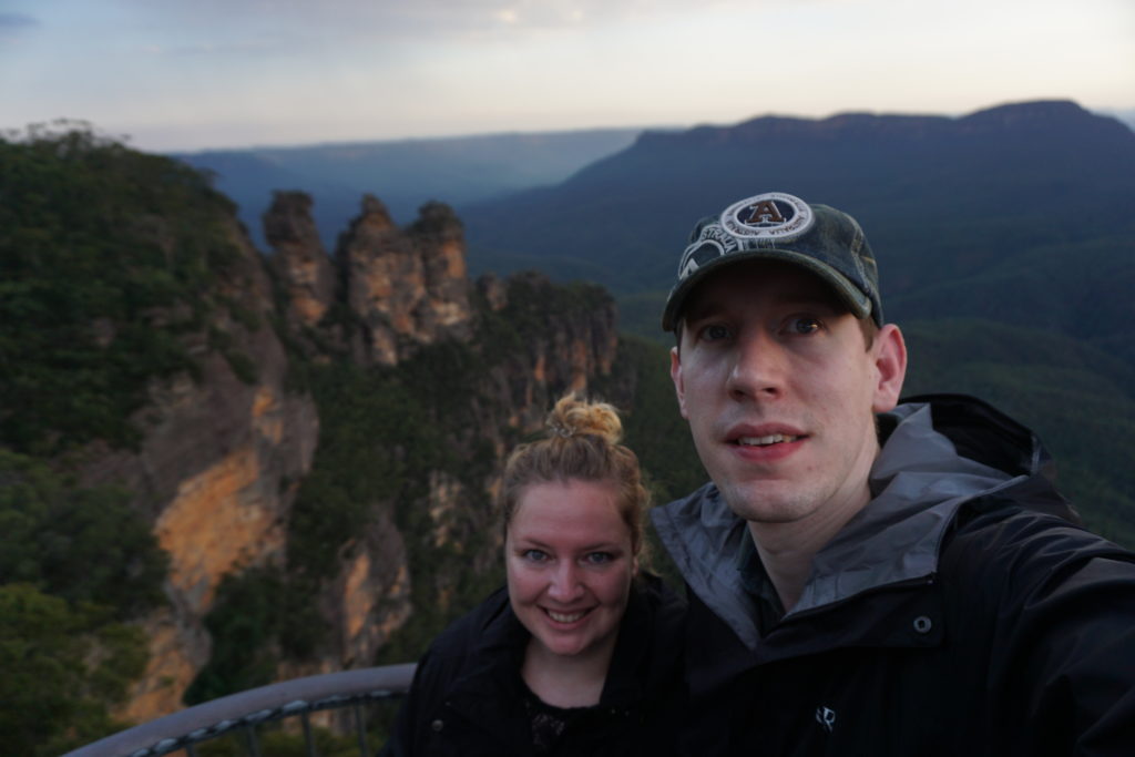 Dit restaurant viel ook een beetje tegen. Dat was eigenlijk een beetje mijn eigen schuld. Het was meer een burgertent. Dus de kip van Rian en mijn draadjesvlees vielen allebei een beetje tegen. Na afloop zijn we in de regen naar de Three Sisters gereden. Dit is een rotsformatie met drie punten. Het is erg mooi om te zien maar wel heel druk helaas. Ik kan niet anders zeggen dat mijn verwachtingen van de Blue Mountains overeenkomen met de werkelijkheid. Het is zo mooi hier. We hebben uitgekeken op de zonsondergang. Ik vond dit een heel bijzonder moment. In veel opzichten is dit te vergelijken met wat ik voelde bij de Grand Canyon. We reden hierna naar het hotel en ik ben vrij snel daarna in een diepe slaap gevallen.