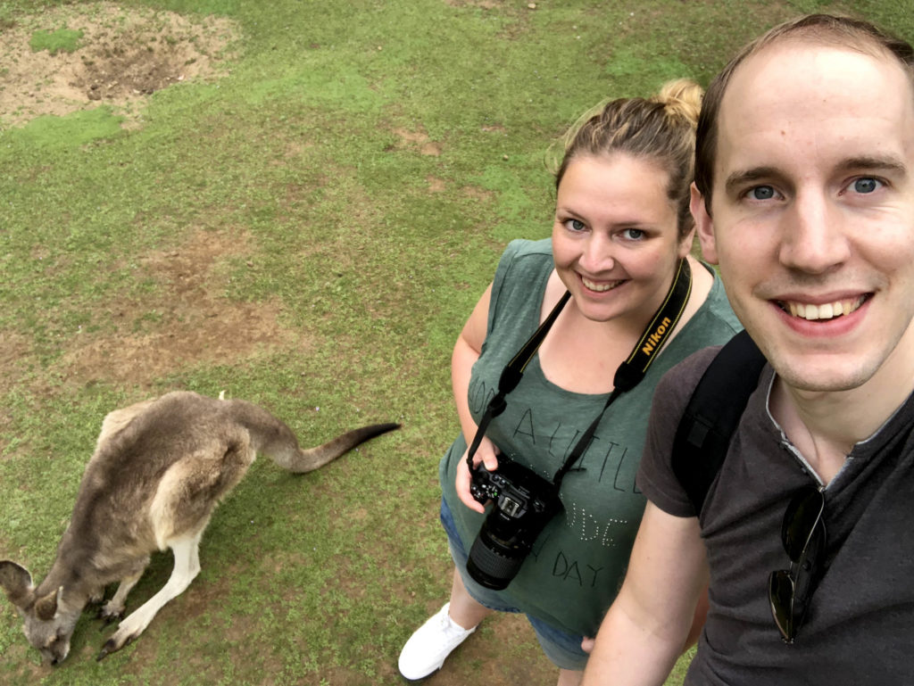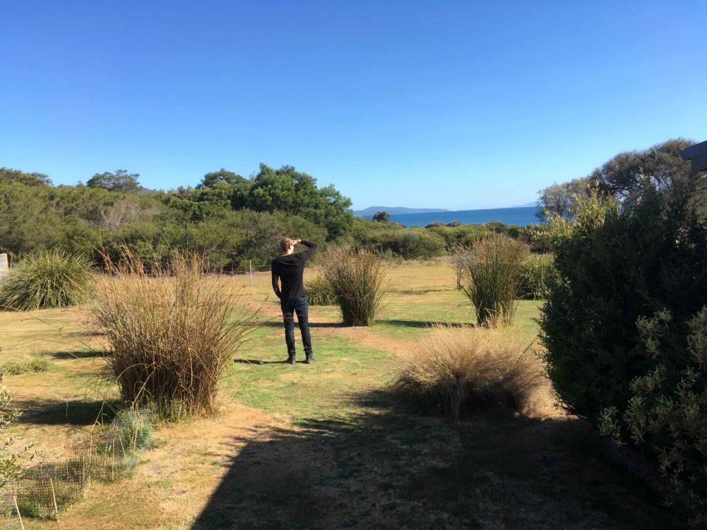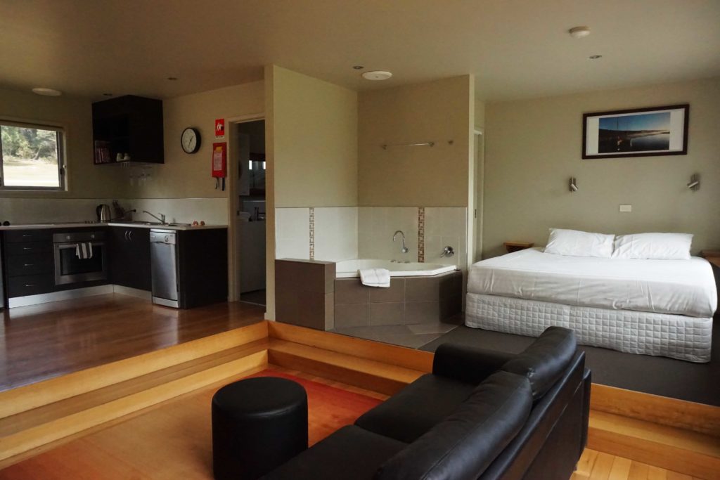 Toen we het één en ander uitgezocht hadden kwamen we erachter dat we eigenlijk veel eerder moesten ontbijten dan 8 uur. Dus ik ging nog even terug naar Bea. Ze was bereid om het ontbijt om 7:30 op te dienen. Ze bood ook nog aan om een kaasplankje als avondeten te regelen. Dat was heerlijk alleen was ik even vergeten wat voor Rianne te halen. Heel asociaal van mij. Maar het liep allemaal heel raar. We gingen lekker even in bad en dat was heerlijk. Het water was een beetje rood. Dat komt door een te lage druk in het waternetwerk. Hier kan je dat niet oplossen want het is heuvelachtig en de druk is in de zomer gewoon te laag gezien het wateraanbod. Logisch dus dat het rood wordt. We hebben nog wat foto’s gemaakt van de wallaby’s die op het gras achter ons huisje stonden. Toch blijven dat soort dingen bijzonder. De zonsondergang was echt adembenemend mooi. Ondanks mijn persoonlijke ongemakken heb ik toch kunnen genieten van deze dag. Het bed is niet zo relaxed hoewel wel groot. Als de een beweegt, beweegt de ander ook.