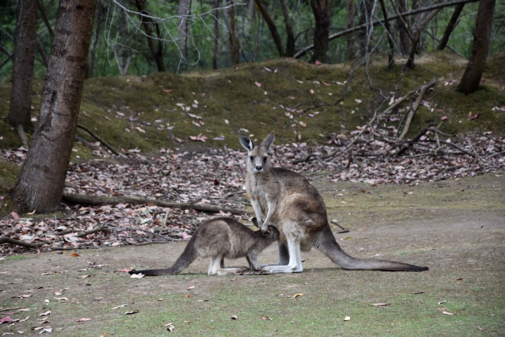 Bij het wegrijden toeterden auto’s achter mij. Ik stond gewoon te wachten tot het vrij was om te gaan. Dus ik toeterde terug zo van, houd je bek gewoon. Ik maakte me geen zorgen maar bij Rianne brak het zweet uit. Ik moest tanken en we wilden wat eten dus we reden naar Halls gap. Ik dacht dat ons verblijf daar ook was maar dat bleek helemaal niet zo te zijn. Die toeterende auto sloeg toen af naar de andere kant. Hij blijf overigens toeteren. Volgens mij naar de auto achter mij. Hoe dan ook ze kunnen allebei mijn rug op! We kochten wel even wat proviand en gingen op zoek naar een informatiepunt. Dat bleek niet makkelijk te vinden. Ze hebben geen visitor centre van de lokale overheid of van het park. Het is een commercieel visitor centre. Dus je moet betalen voor de kaarten. Geen probleem verder maar wel opvallend. We kwamen mensen tegen die we hadden ontmoet bij The Balconies. Die hoopten dat ze naar beneden zouden vallen (de Chinezen). Ik vertelde over de Grand Canyon en over dat boek. Nu gaven ze ons een tip, ga even wijnproeven. Euh ik drink niet. Ze vroegen waar wij ons ijs vandaan hebben. De supermarkt. Want bij de ijskraam stond een rij van hier naar Tokyo.
