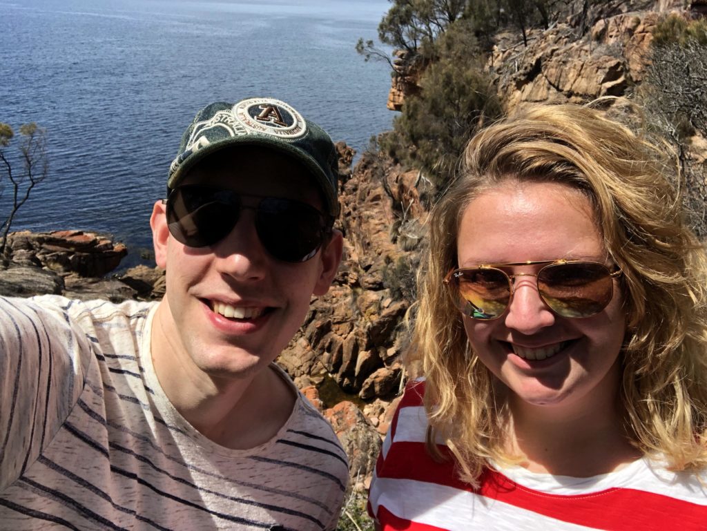 We kwamen aan bij The Balconies. Dit zijn uitstekende rotsen. Het was een complete chaos bij het parkeren. Mensen zetten elkaar helemaal vast. Uiteindelijk kon ik een plekje bemachtigen. Ik had mijn regenjas aan omdat ik nog zo verbrand was van gisteren. Dus ik had het bloedheet. Het uitzicht over de Grampians is fenomenaal. De bergen en bossen, een prachtig meer. Het is gewoon schitterend. Rianne kon dit weer wat minder boeien. We liepen een pad van slechts 1,2 kilometer. Maar zoals alles hier kunnen ze of niet rekenen, of valt het gewoon tegen. Het is heet, 32 graden met volle zon. We liepen over het pad en zagen een mooi plek om foto’s te maken. Met 32 graden vertonen de vliegen hun aller slechtste gedrag. Ze vliegen maar voorbij je oren ze belagen je echt. Maar goed we kwamen na 1000 uur aan bij het punt. Het krioelde hier van de Chinezen. Er staan hekken en borden met dat je niet over de reling mag klimmen. Het bijna onmogelijk gemaakt. Maar niets houdt ze tegen om toch eroverheen te klimmen om een foto te maken. Ik moest vermakelijk terugdenken aan dat prachtige boek Over the edge, death at the Grand Canyon. Daar staat een stuk of 200 van dit soort stakkers in. Maar goed, geen probleem. We hebben genoten van het uitzicht en konden nu weer teruglopen. Dat was relatief snel gepiept. Op de parkeerplaats stond het nu helemaal vast.